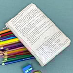 Both sides of the pages are covered in clear plastic for protection and durability. They can withstand the odd splash of water and can be wiped clean with a damp cloth, but they are not fully waterproof (where there’s stitching). You may notice the pages have a few crinkles, these occur during the making process when the finished pencil case is turned right side out, but I feel the crinkles add character! The pencil case is unlined so you can read the pages on the inside as well!