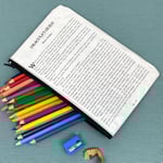 Both sides of the pages are covered in clear plastic for protection and durability. They can withstand the odd splash of water and can be wiped clean with a damp cloth, but they are not fully waterproof (where there’s stitching). You may notice the pages have a few crinkles, these occur during the making process when the finished pencil case is turned right side out, but I feel the crinkles add character! The pencil case is unlined so you can read the pages on the inside as well!