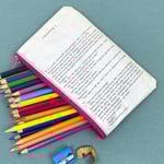 These are a versatile zipper pouch made from repurposed book pages. Use them as a pencil case, wallet, cosmetic bag, or for storing all the little bits and bobs that get lost in your bag.