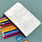 These are a versatile zipper pouch made from repurposed book pages. Use them as a pencil case, wallet, cosmetic bag, or for storing all the little bits and bobs that get lost in your bag.